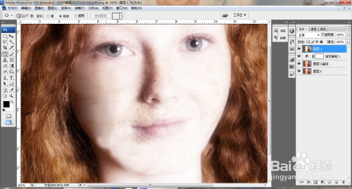 放大图片,仿制钤记东西,按alt键皮肤取样,涂抹皮肤,如图