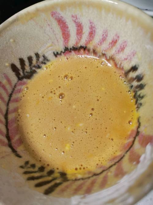 2淀粉面粉和蛋液加酱油和一丢丢盐搅打匀称,当作比力淡薄的面浆