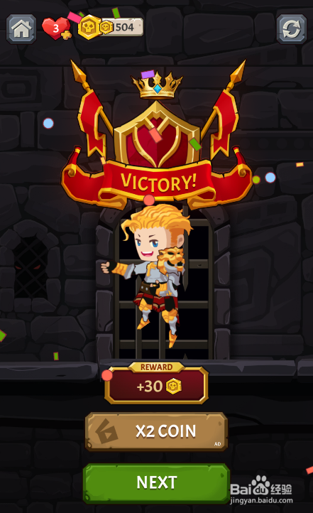 少年顺遂营救了跳落的公本家儿,弹出VICTORY的通关动画,如图。这样就过关了。