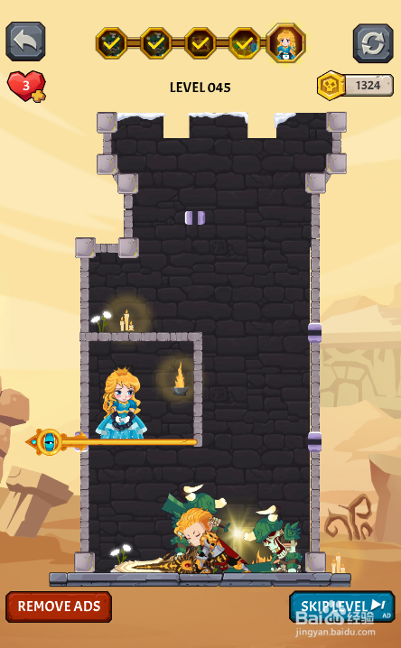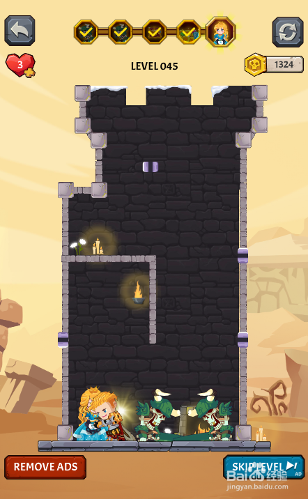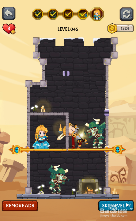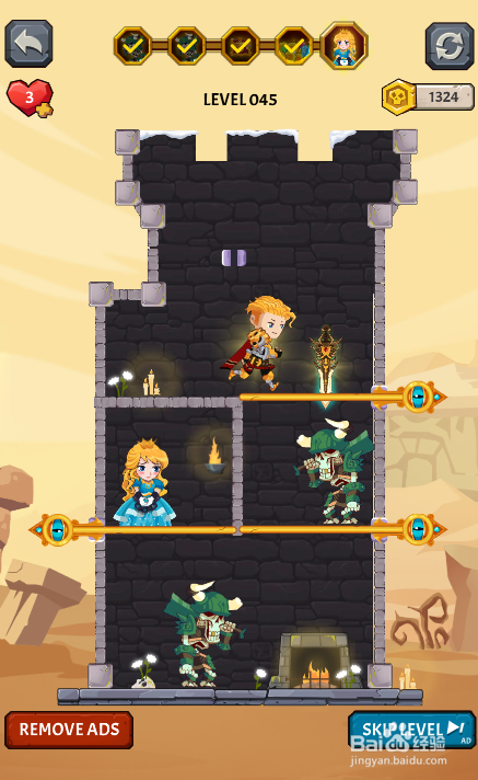 点击移除少年下侧的横插销,底部的骷髅兵被少年斩杀,如图。