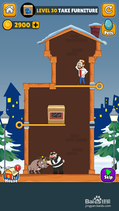 这个关卡中有三个横插销,匪徒在家具右侧,使命是得到家具,环境如图。