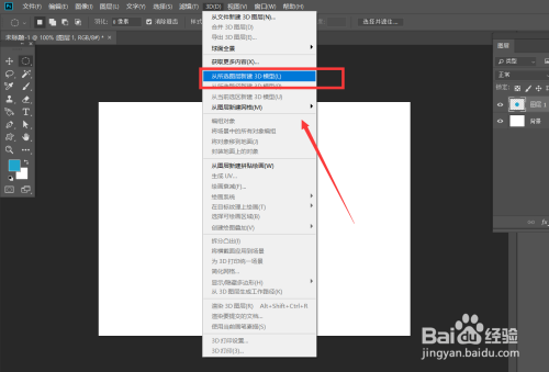 将选区填充本身喜欢的颜色,然后点击菜单栏【3D】——【从所选图层新建3D模子】。