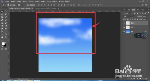 利用PS勾画出一个蓝色的天空作为配景色,利用轻便简略做出即可