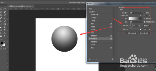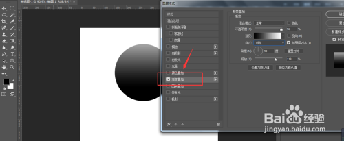 在混淆选项栏中,选择倒数第四个-渐变叠加,打开后右侧是需要调治的属性