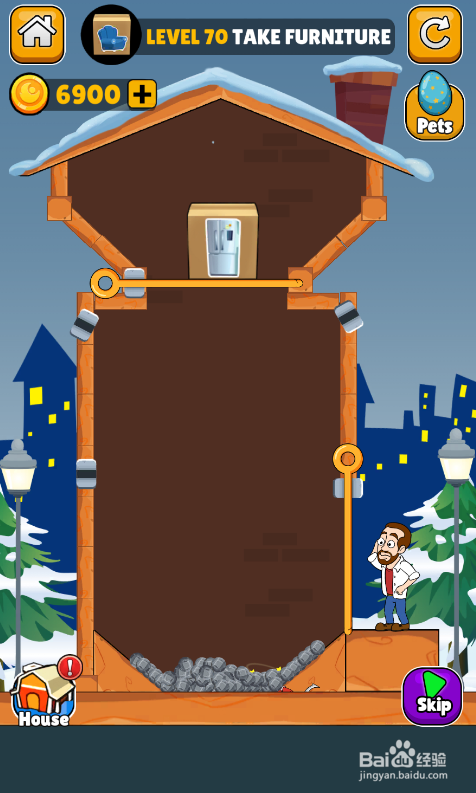 这个关卡的使命是得到顶部的家具,内里有五个插销,环境如图。