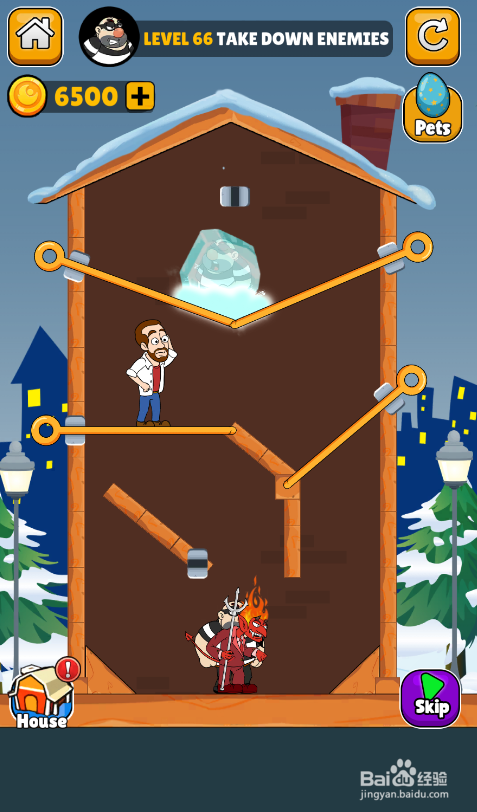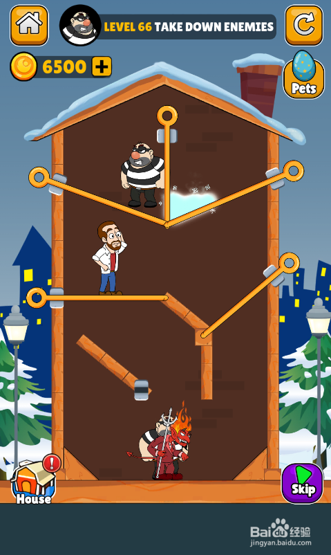 这个关卡的使命是消弭所有伤害,内里有六个插销,环境如图。