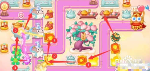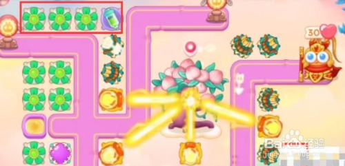 第一步,利用的炮塔是:毒针、邪术球、多重箭、电扇、火瓶,这一关我们比力好用的输出是电扇和火瓶。