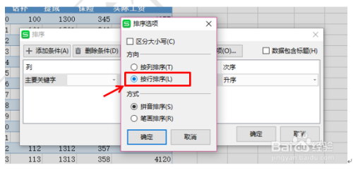 体系弹出排序选项窗口,我们在偏向处选择按行排序,如图5