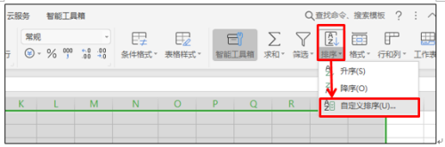 然后同时按Ctrl+A键,选中所有表格,点击开始菜单下的排序东西,鄙人拉菜单中选择自界说排序,如图3
