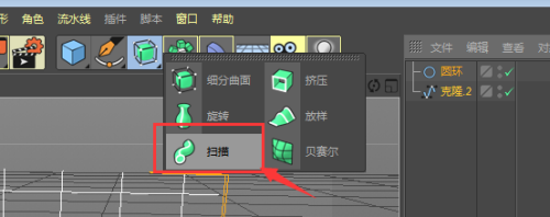 找到扫描东西,将这两个模子添加上扫描,这样适才的线状框就酿成了实体的框了,如图所示。