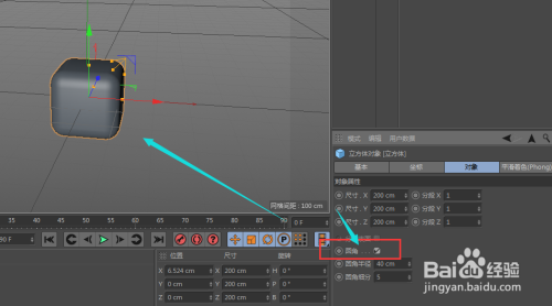 当我们点击下面的圆角的时辰,看图,就可以看到适才的立方体的棱角部门变得圆滑了许多
