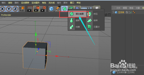 成立好一个立方体后,找到这个细分的选项栏,点击成立