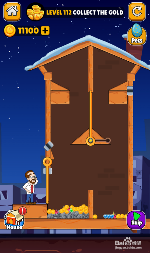 这一关内里有三个插销和一个推拉杆,白色鬼魂在男本家儿人右侧,通关使命是得到宝藏,环境如图。