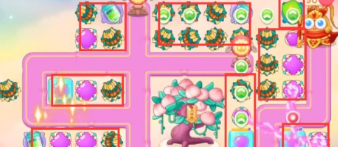 本关可以或许利用的炮塔是:毒针、闪电炮、邪术球、多重箭、平凡炮塔,这一关我们本家儿要用多重箭玩。