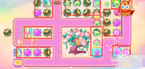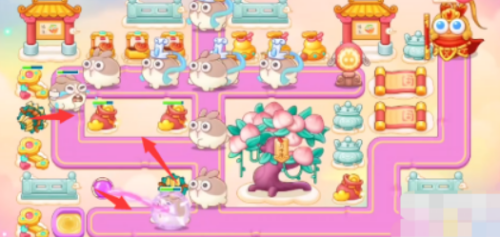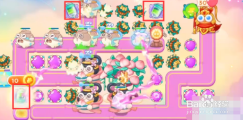 第三步,第一波跑车兔打完之后,没有盾牌小兔子可以剩下5-6只,留出一点时间清算左边停滞物,之后在萝卜相近成立瓶子炮,比及兔子走到那里举行清算。