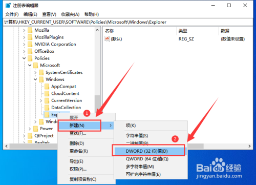 再叮译狠在新建的“Explorer”项中新建一个“DWORD (32)值”。