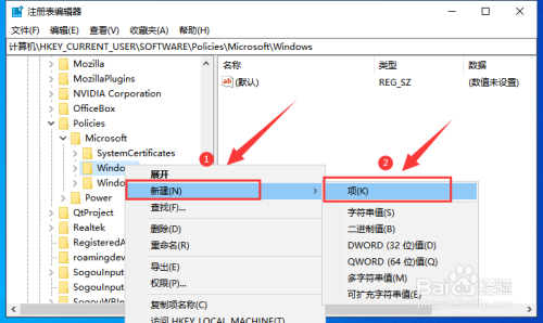 右击“Windows”项,选择“新建”,选择“项”。