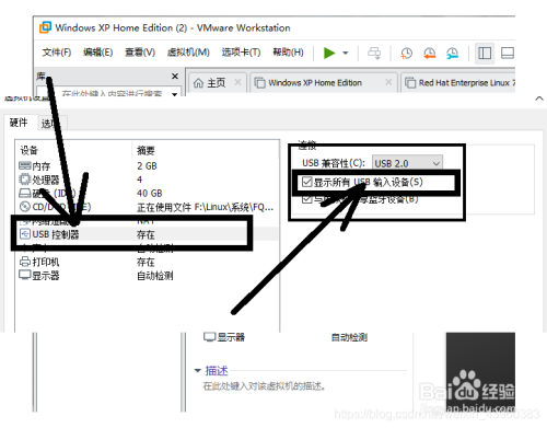 点击上面的“USB节制器”选项,然后勾选“显示所有USB输入设备”选项。