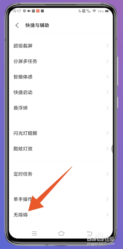 接着在快捷与辅助的页面中,滑动屏幕到最底部,点击无停滞。