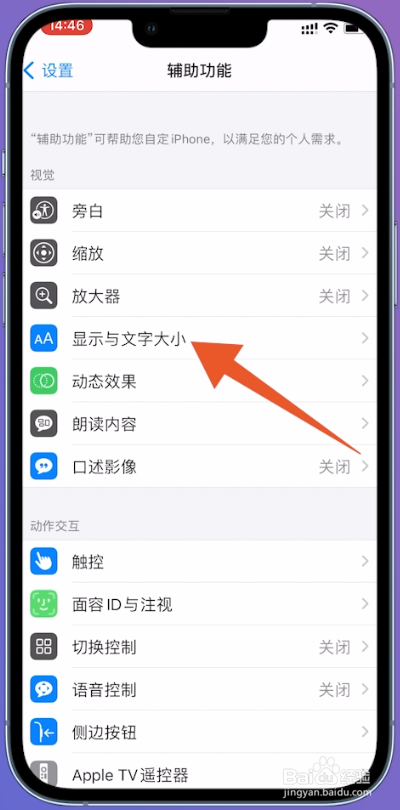 切换到辅助功效的页面之后,点击显示与文字巨细。