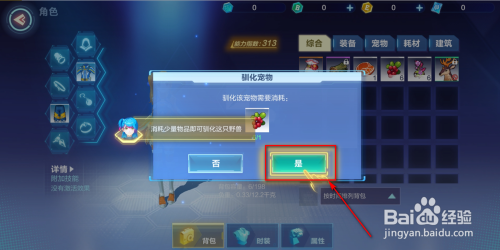 6、驯养乐成,查看大角鹿的属性,点击下方确认即可