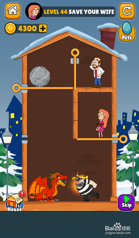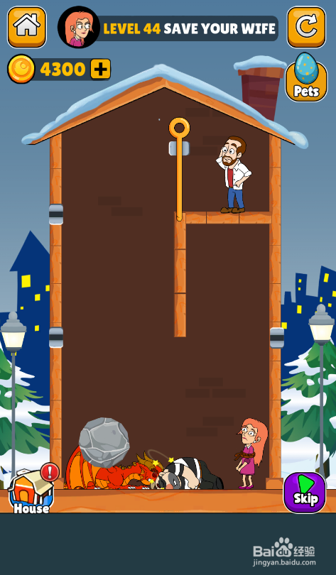 男本家儿人跳到地上顺遂营救了女本家儿人,得到三颗星,如图。这样就过关了。