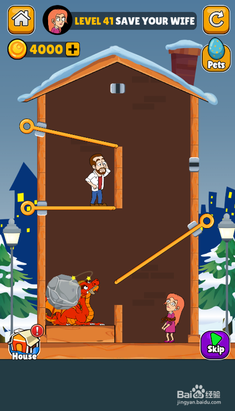 这一关内里有五个插销,红龙在男本家儿人下侧,巨石在男本家儿人上侧,使命是营救女本家儿人,环境如图。