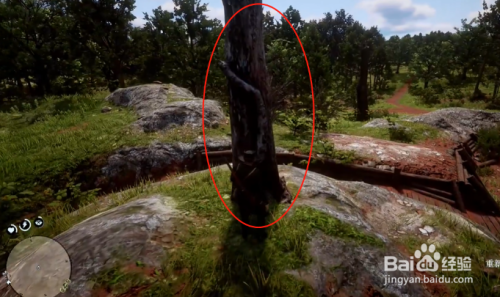 达到后可以看到一颗粗壮的枯树,我们在其阁下点击查看。