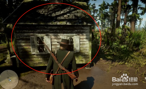 达到后会看到一个破旧的小房子,如图圈出来的这个。