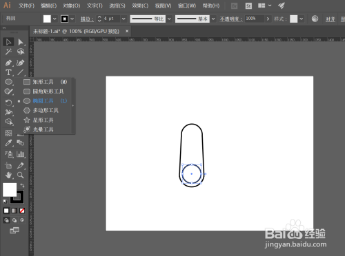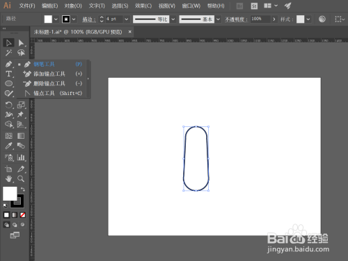 从东西栏找到“钢笔东西”,绘制一个外形,填充白色,加上玄色描边