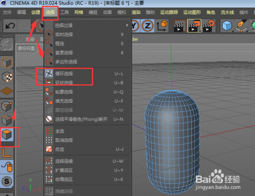 选择左侧的面东西栏,继续在选择菜单中,选择轮回选择或者环状选择设置