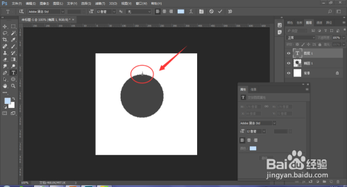 输入文字后,就会呈现一个新图层,封闭或删除正圆即可。