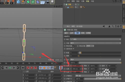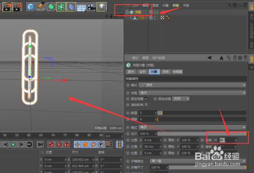 在位置栏中,找到角度设置H值的角度为90度;这样克隆的模子就会扭转90度,如图所示