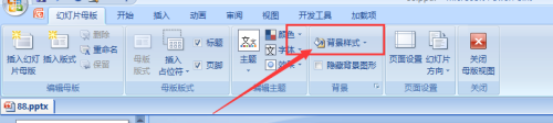 这样进入到母版属性节制区,找到如图位置的配景样式栏,有个下拉菜单,点击打开它