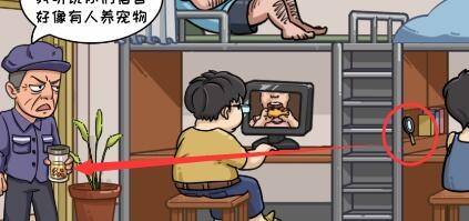 点击门口,宿管大爷就会带着水杯过来查抄,用放大镜去看水杯,找到“枸杞”。