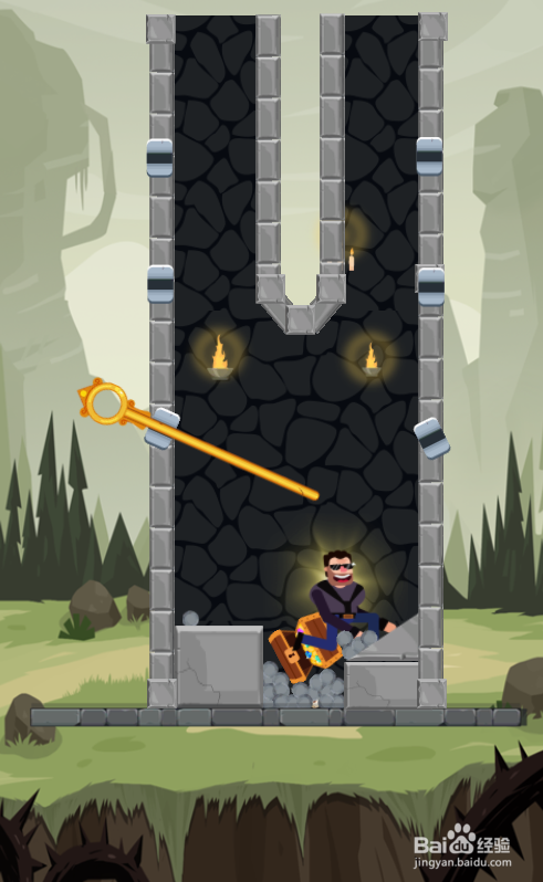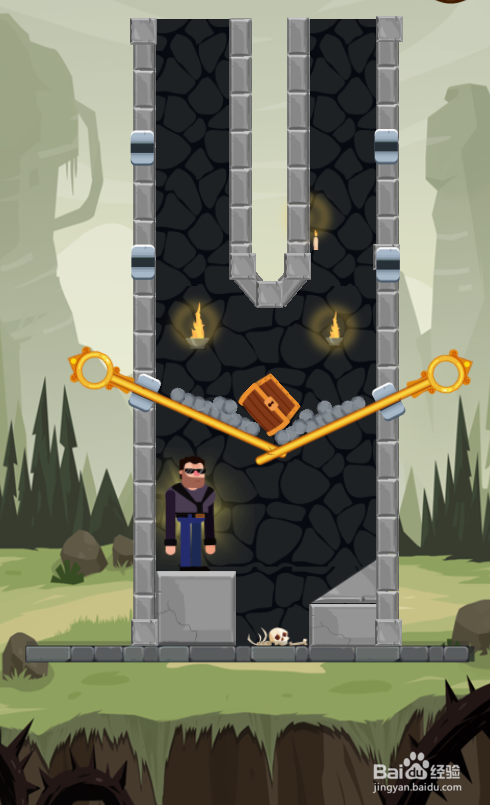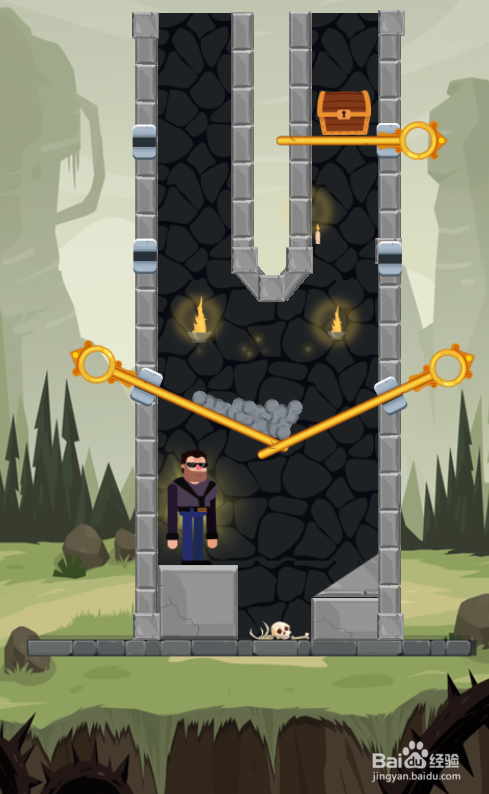 这个关卡中有五个体针,我在左侧底部,使命是得到右上侧的宝箱,环境如图。
