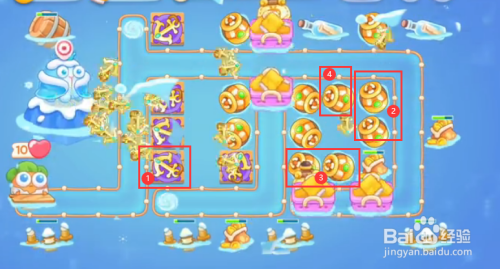 第一步,这关必然要有鱼雷和强力塔,强力塔保举利用船锚邪术球或弓箭。
