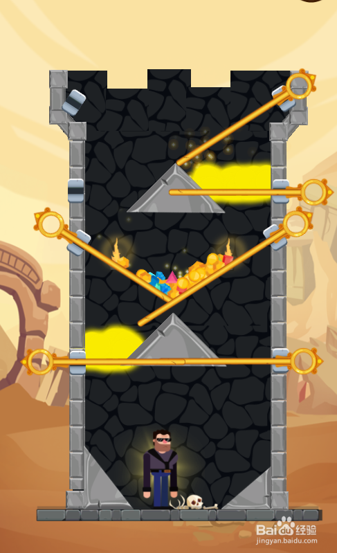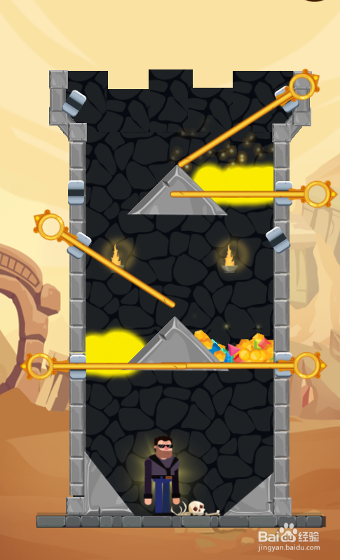 这一关里有八个体针,我站在底部,使命是得到顶部的宝藏,环境如图。