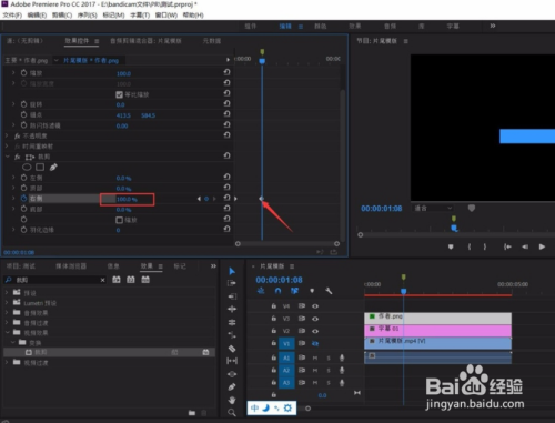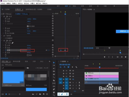 放置两个要害帧之后,我们选中终点位置的要害帧,将裁剪的数值调解为0%(不裁剪),这样就完当作了从100%不显示到0%完全显示的历程。