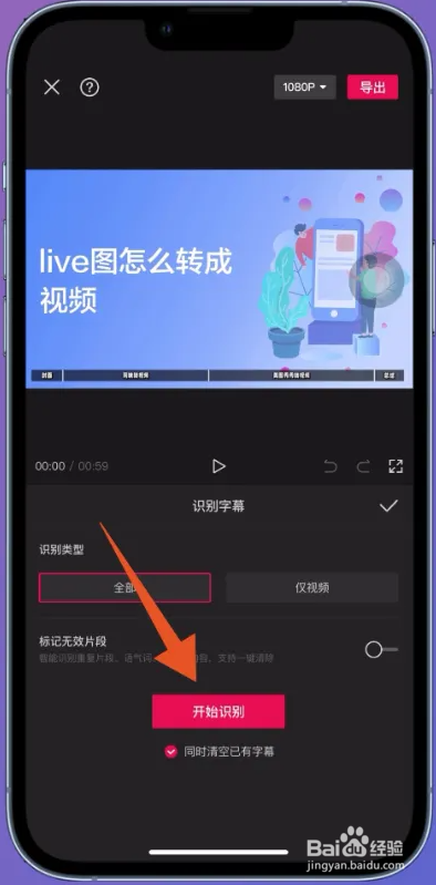 翻转页面点击辨认字幕,页面弹出辨认字幕窗口,点击开始辨认。