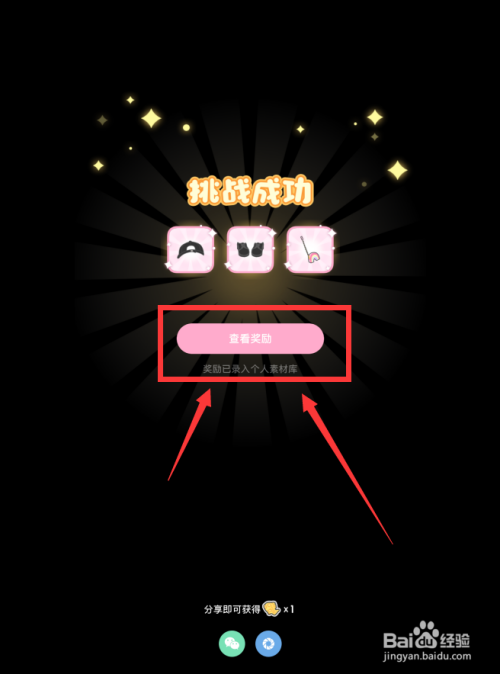 体系提醒挑战乐成,点击查看奖励。