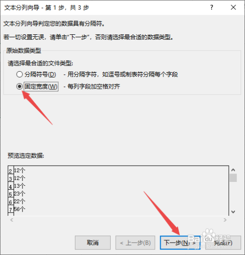 然后点击选择固定宽度,点击下一步。