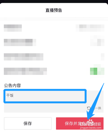 输入直播预报通知布告的内容,然后点击【生存并公布预报】即可。
