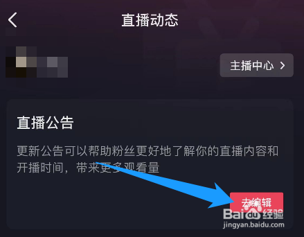 进入页面后在【直播通知布告】右侧点击【去编纂】按钮