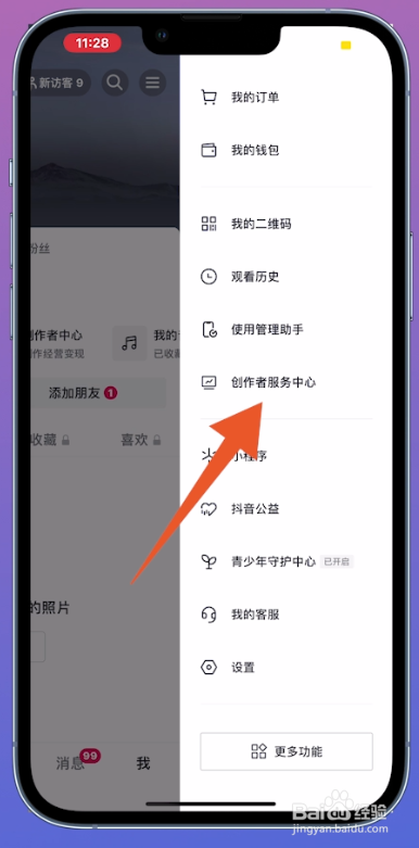 打开功效栏之后,点击页面中的【创作者办事中间】。