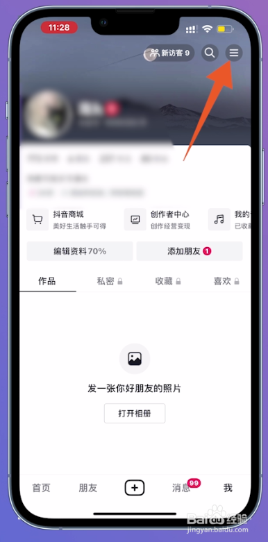 切换进入小我私家本家儿页面之后,点击页面右上的三横图标。