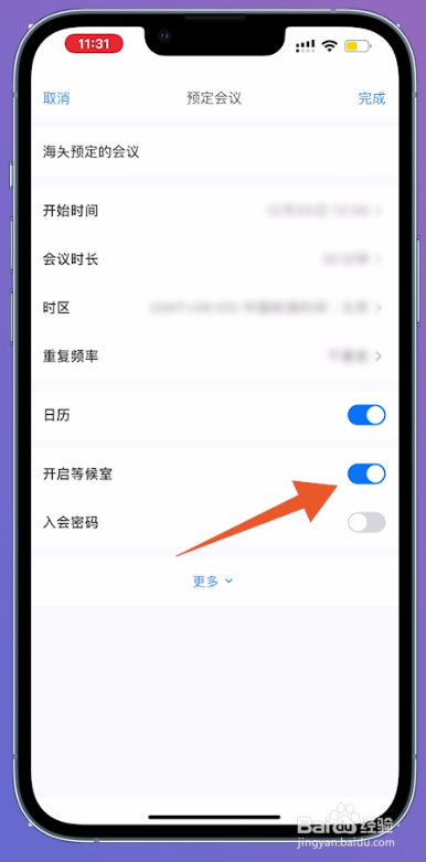 打开新的页面之后,将【开启等待室】后的按钮打开。