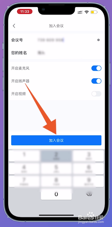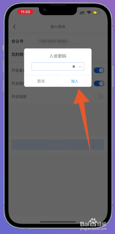 切换进入新的页面之后,输入相干内容并点击【插手集会】。