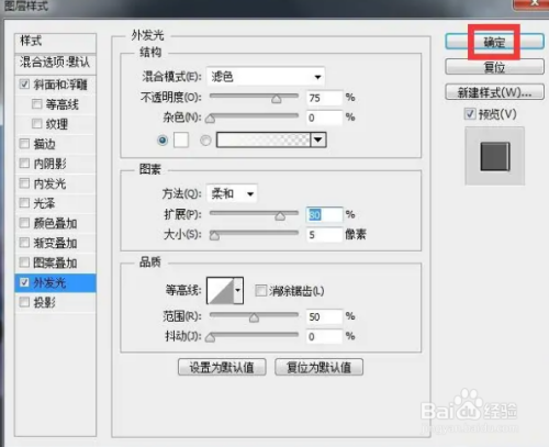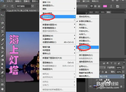 点击图层,选择图层样式下的外发光;