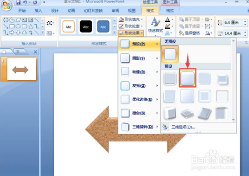 点击外形效果,选择预设,添加预设2样式;